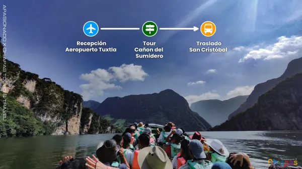 Recepción al aeropuerto Internacional Ángel Albino Corzo de Tuxtla Gutiérrez y Tour al Cañón del Sumidero con traslado compartido desde Tuxtla Gutiérrez a San Cristóbal.